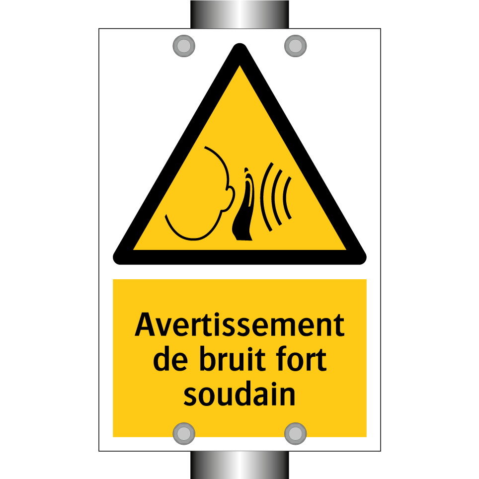 Panneau d'avertissement avec le texte : "Avertissement de bruit fort soudain"