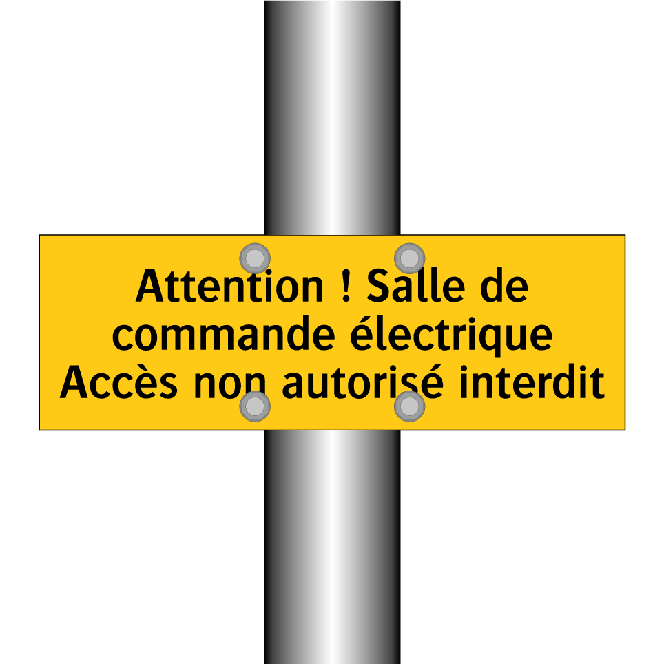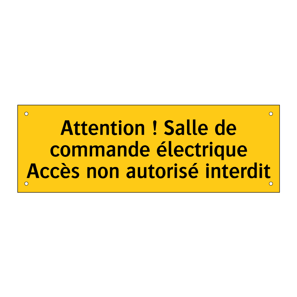 Panneau d'avertissement avec le texte : "Attention ! Salle de commande électrique Accès non autorisé interdit"