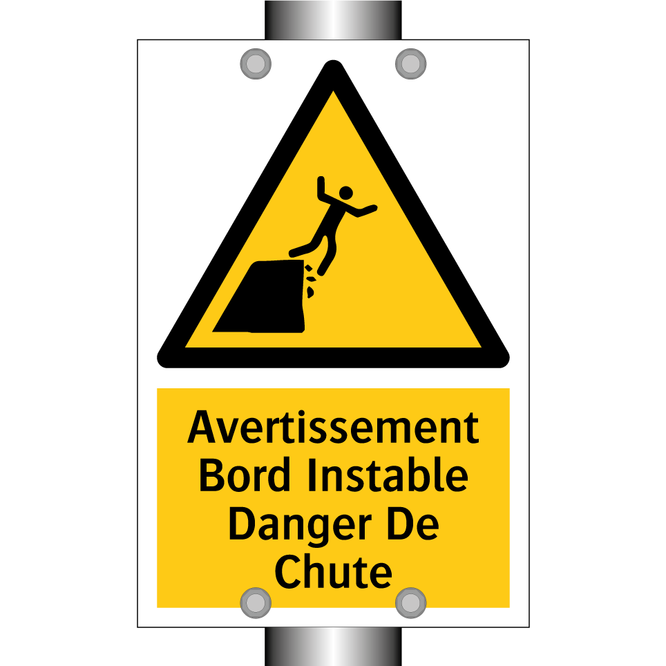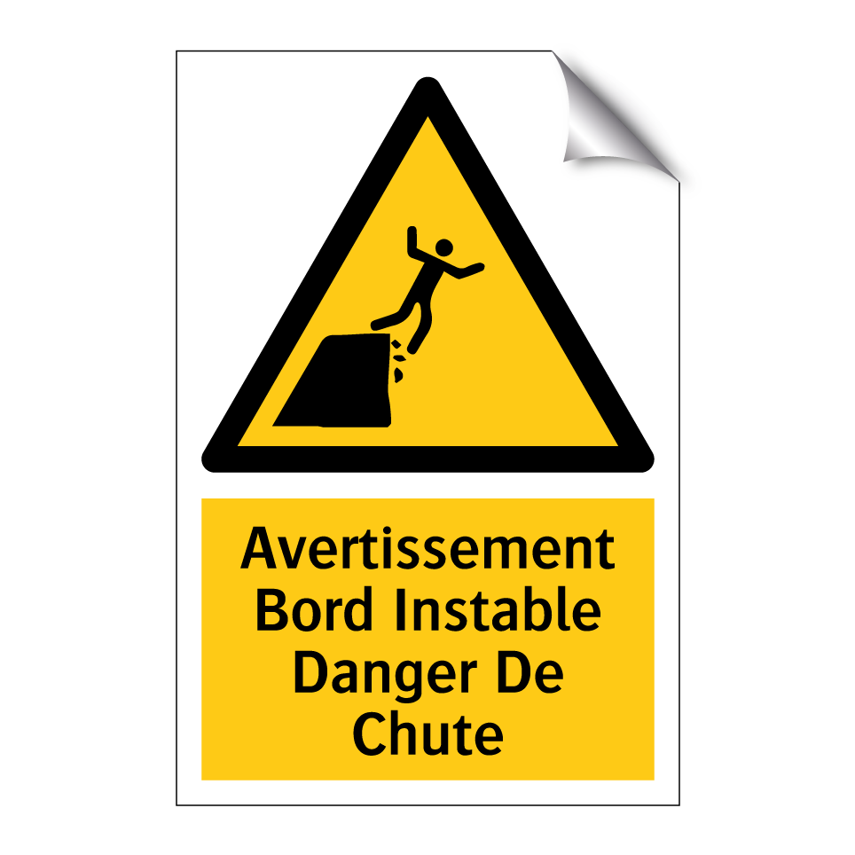 Panneau d'avertissement avec le texte : "Avertissement Bord Instable Danger De Chute"