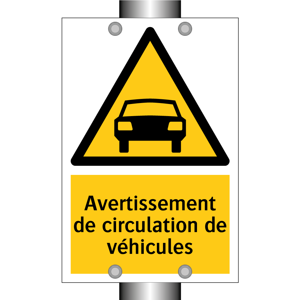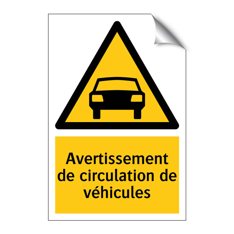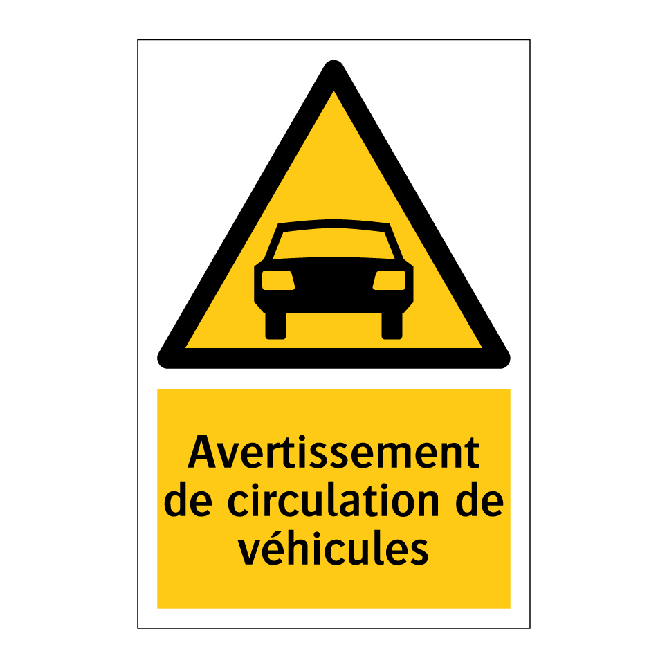 Panneau d'avertissement avec le texte : "Avertissement de circulation de véhicules"