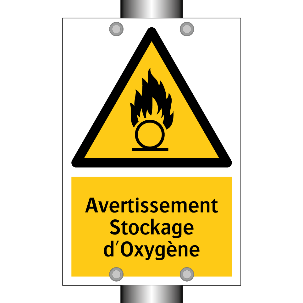 Panneau d'avertissement avec le texte : "Avertissement Stockage d'Oxygène"