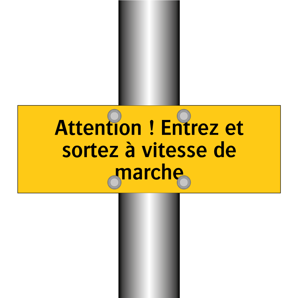 Panneau d'avertissement avec le texte : "Attention ! Entrez et sortez à vitesse de marche"