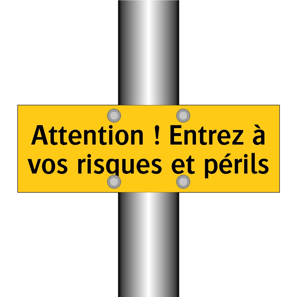 Panneau d'avertissement avec le texte : "Attention ! Entrez à vos risques et périls"
