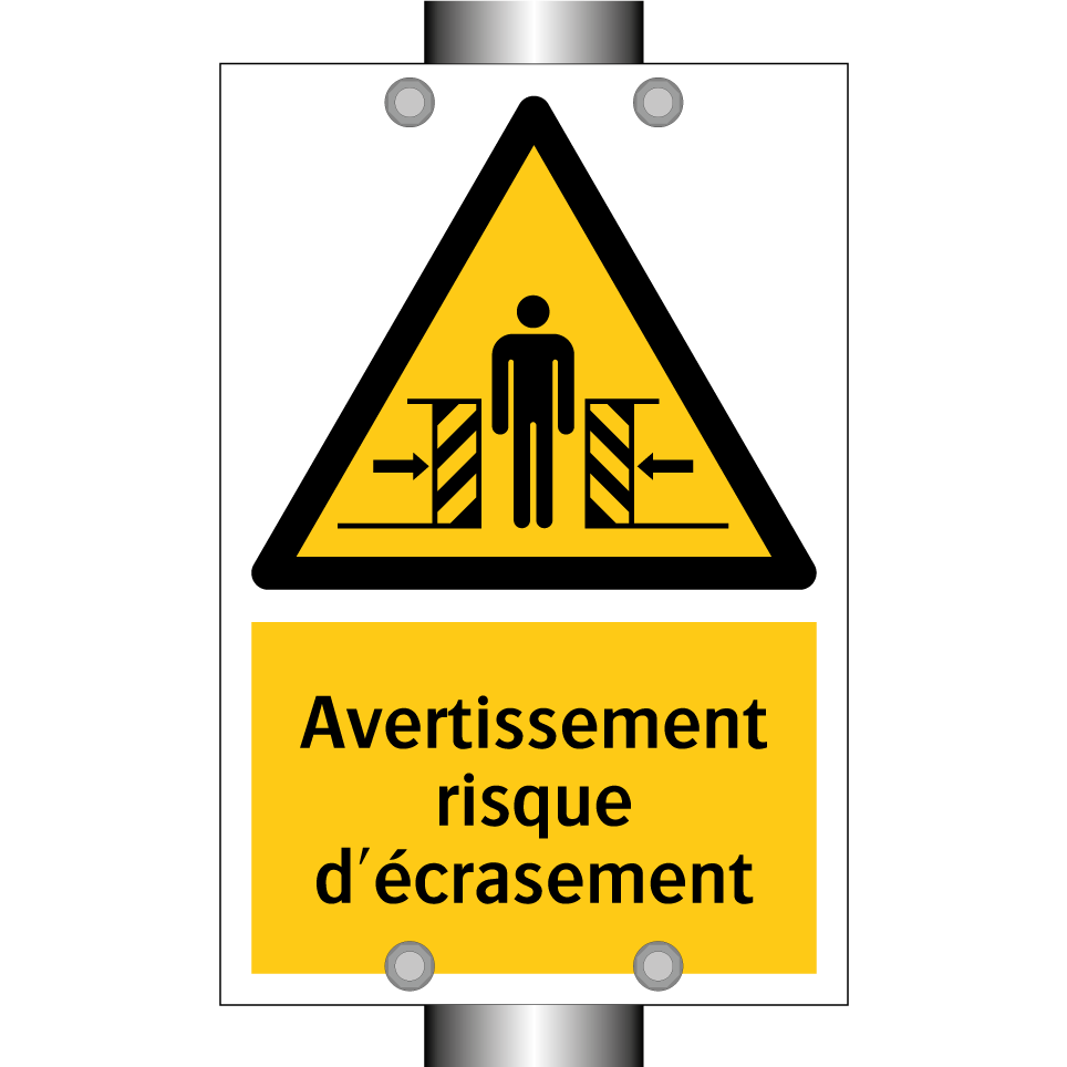 Panneau d'avertissement avec le texte : "Avertissement risque d'écrasement"