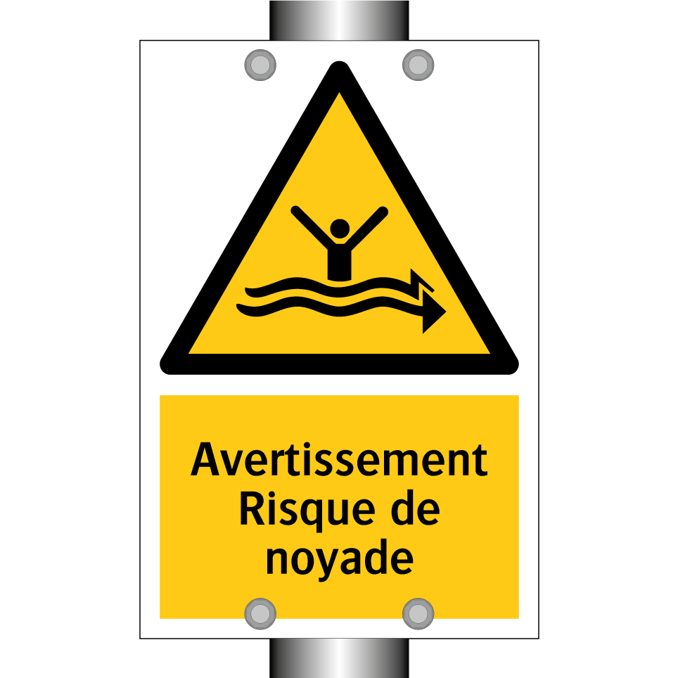 Panneau d'avertissement avec le texte : "Avertissement Risque de noyade"