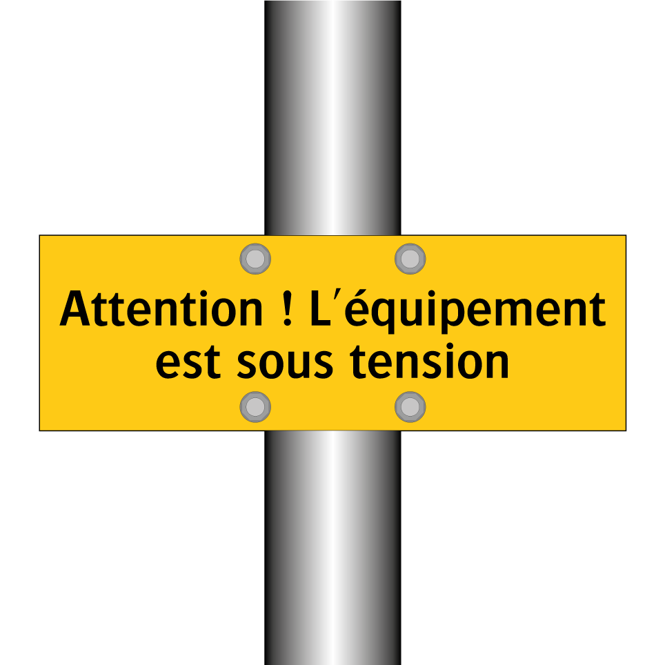 Panneau d'avertissement avec le texte : "Attention ! L'équipement est sous tension"