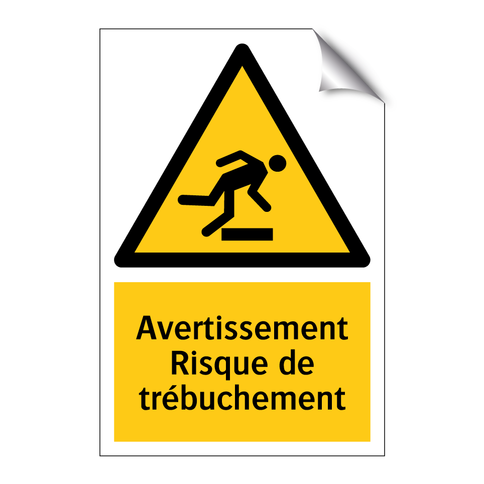 Panneau d'avertissement avec le texte : "Avertissement Risque de trébuchement"