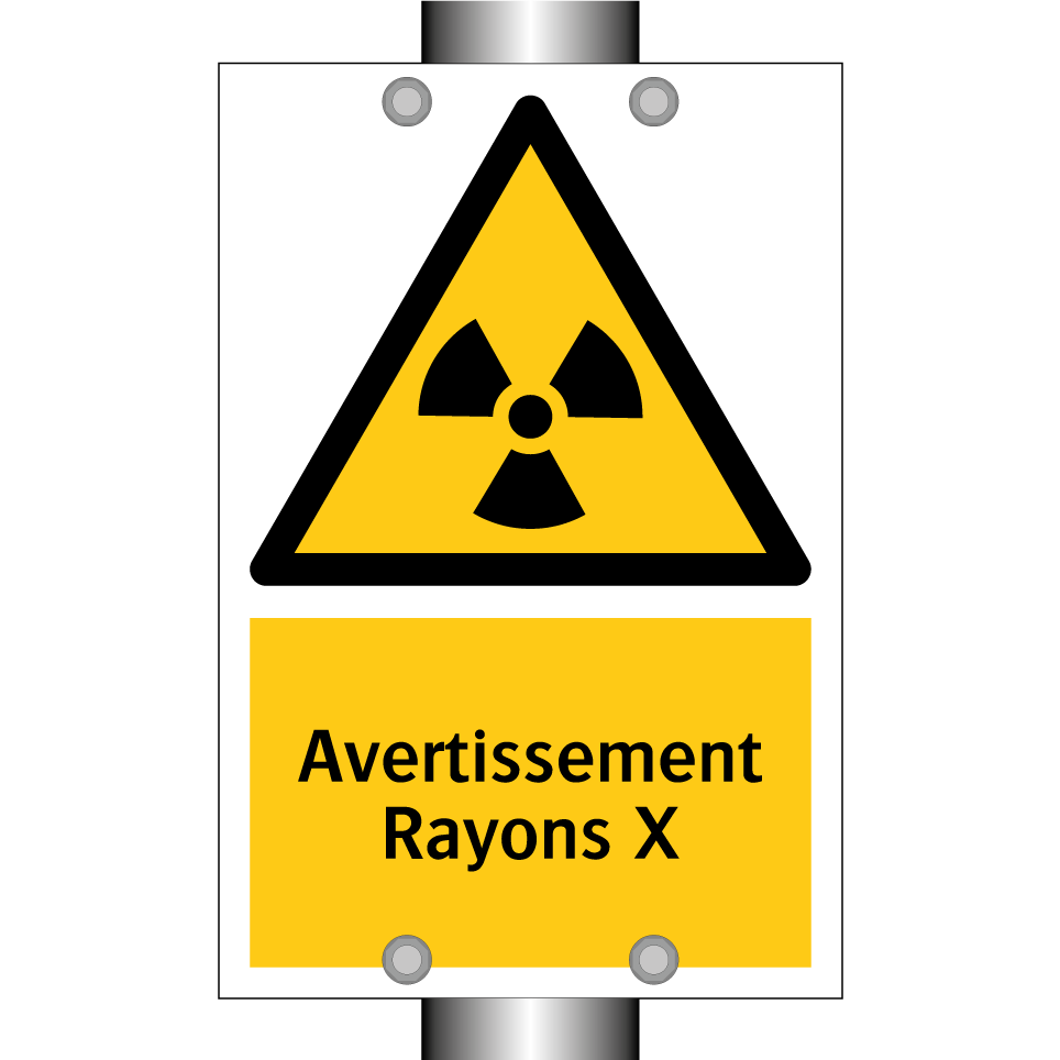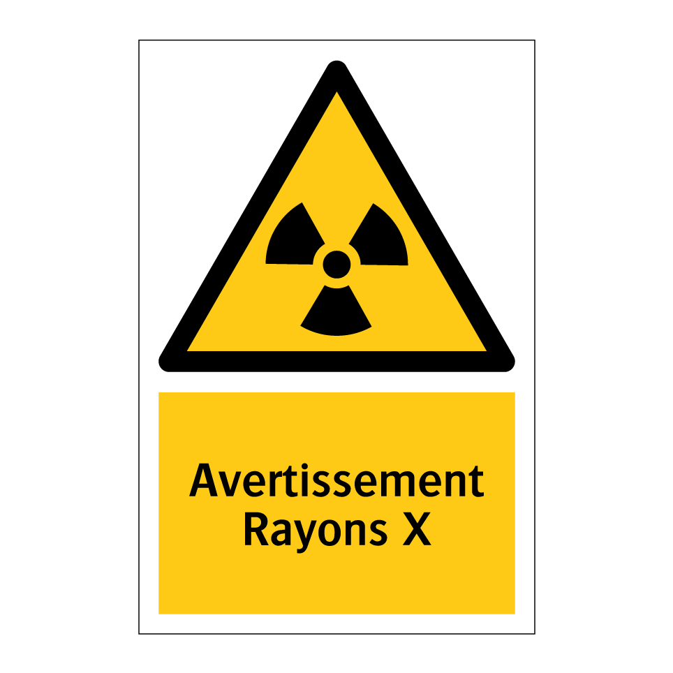 Panneau d'avertissement avec le texte : "Avertissement Rayons X"