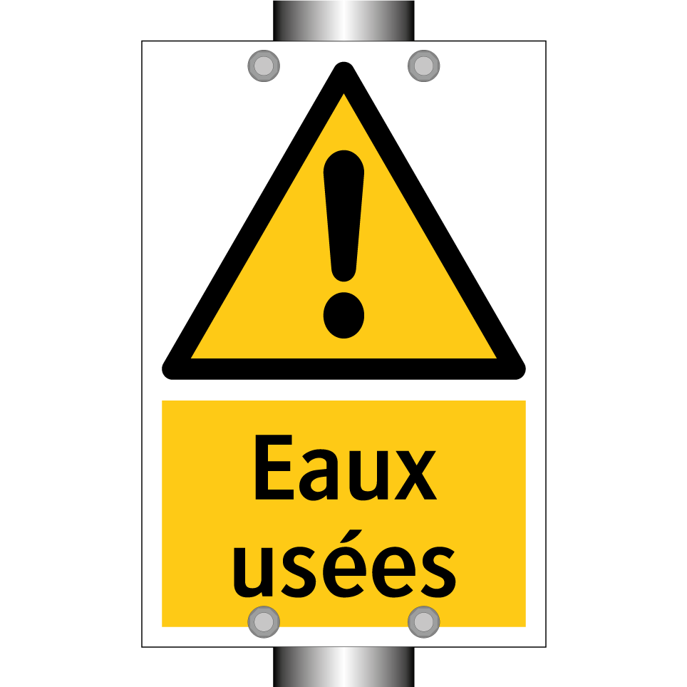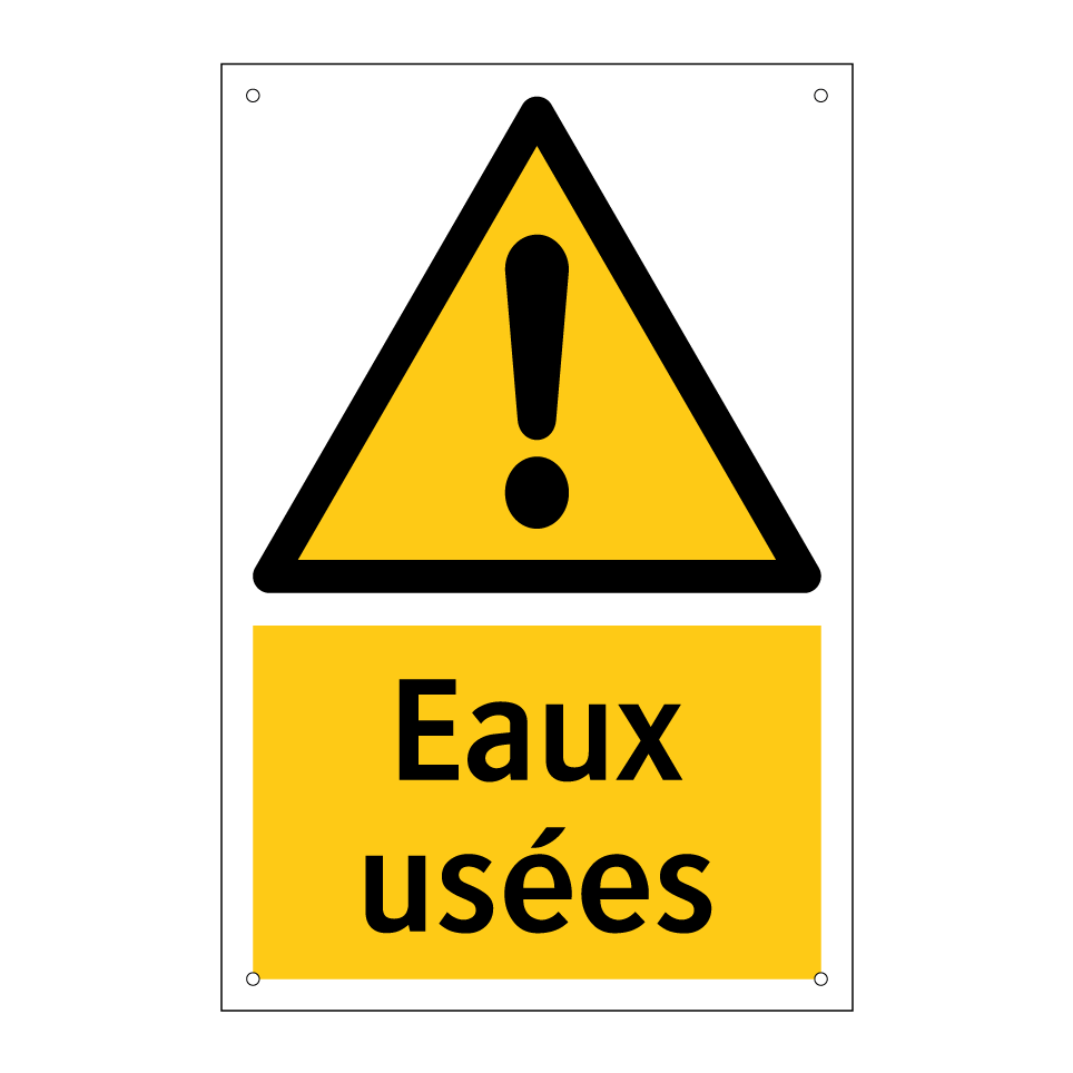 Panneau d'avertissement avec le texte : "Eaux usées"