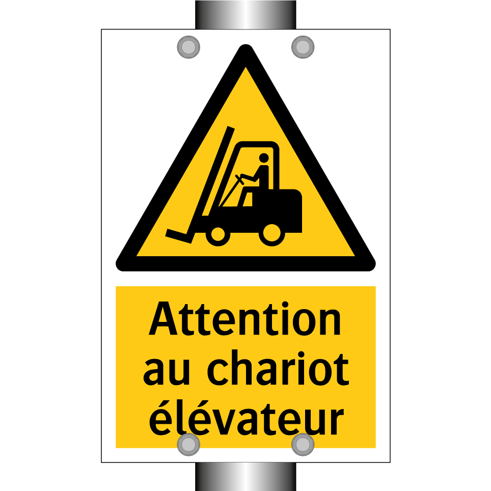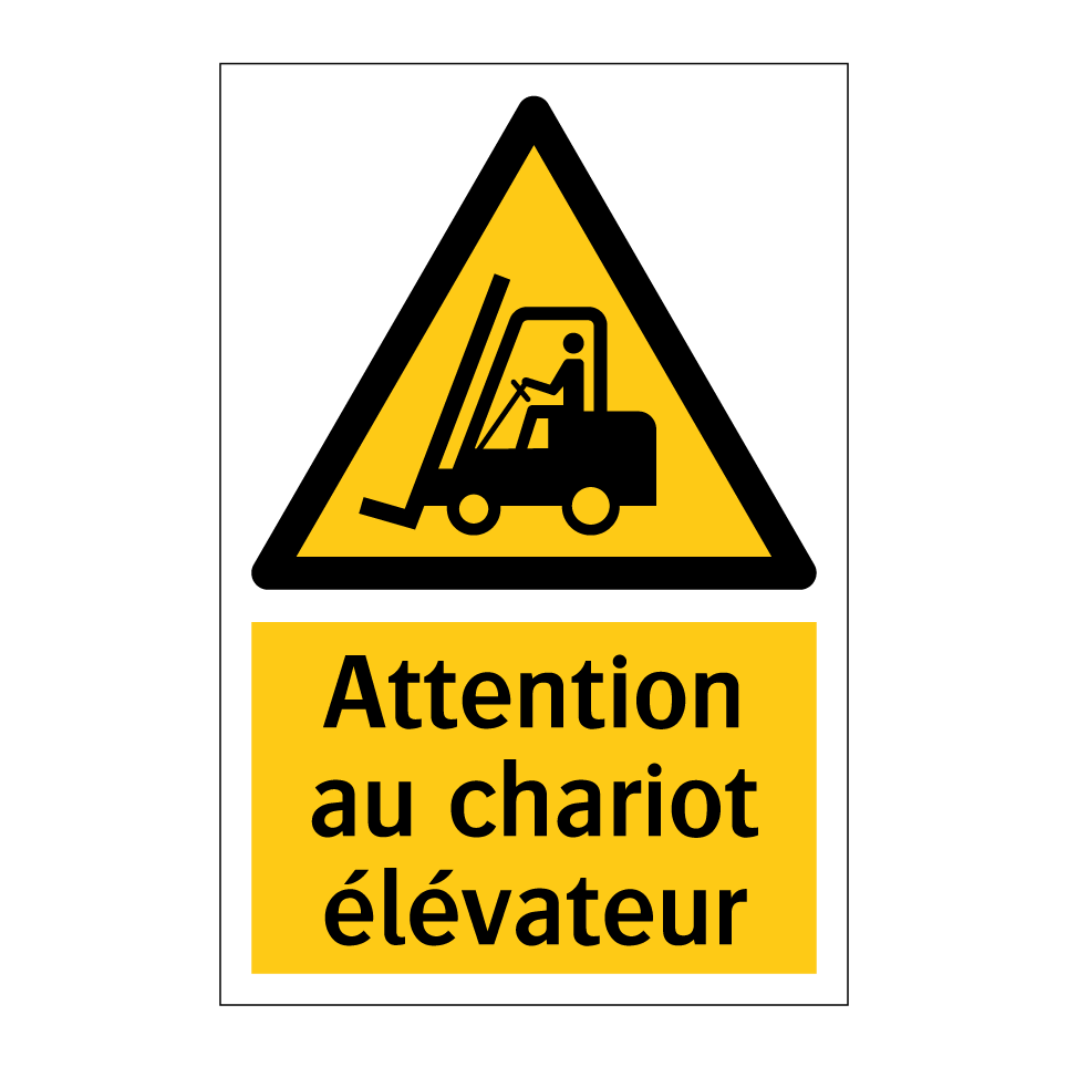 Panneau d'avertissement avec le texte : "Attention au chariot élévateur"