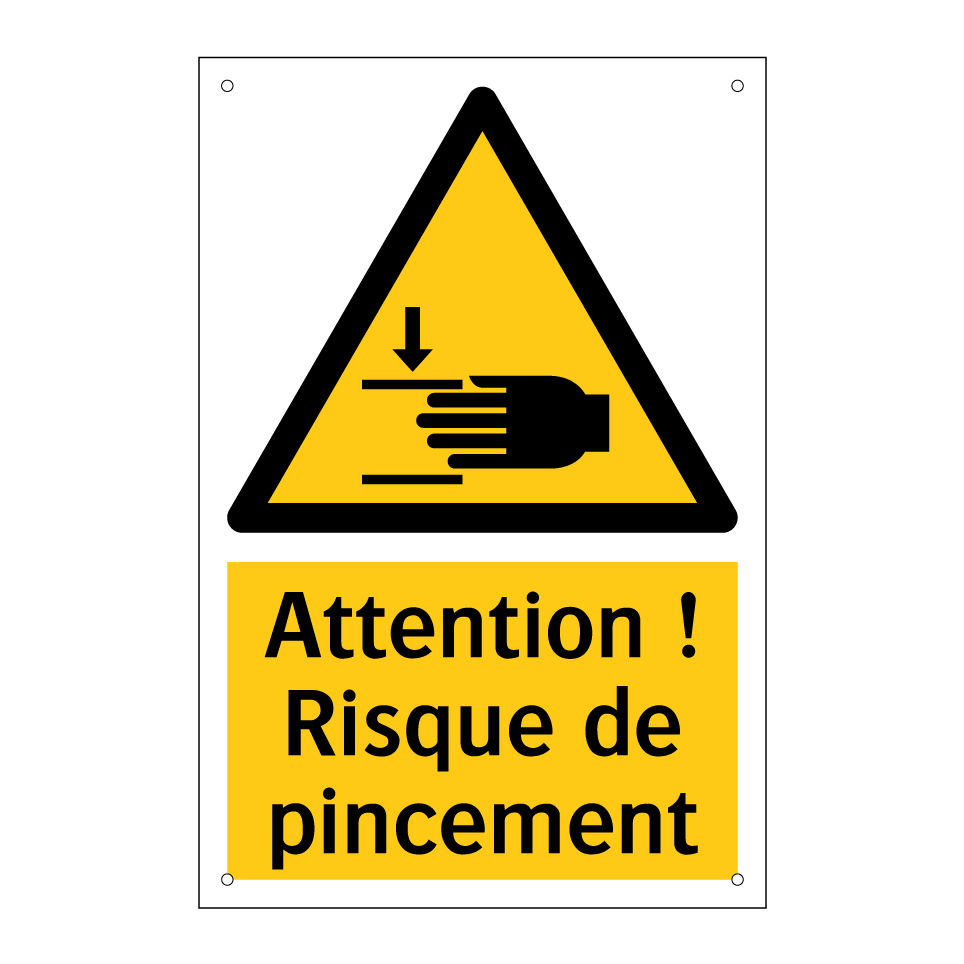 Panneau d'avertissement avec le texte : "Attention ! Risque de pincement"