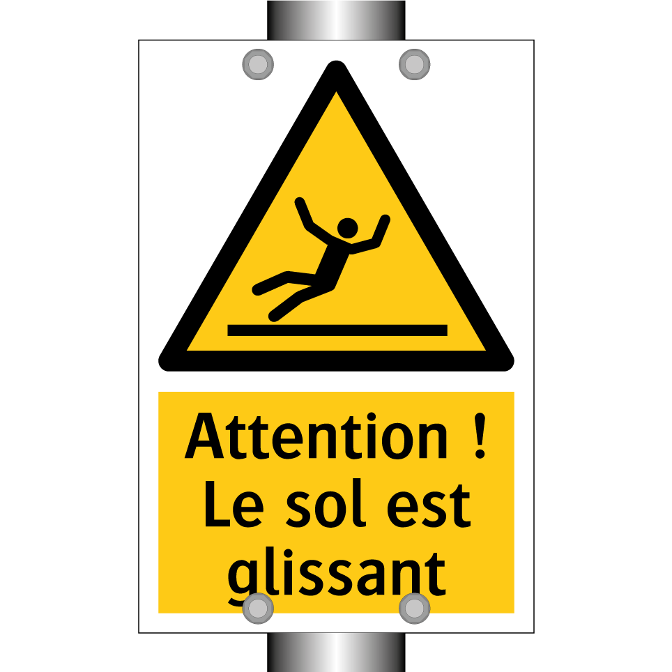 Panneau d'avertissement avec le texte : "Attention ! Le sol est glissant"