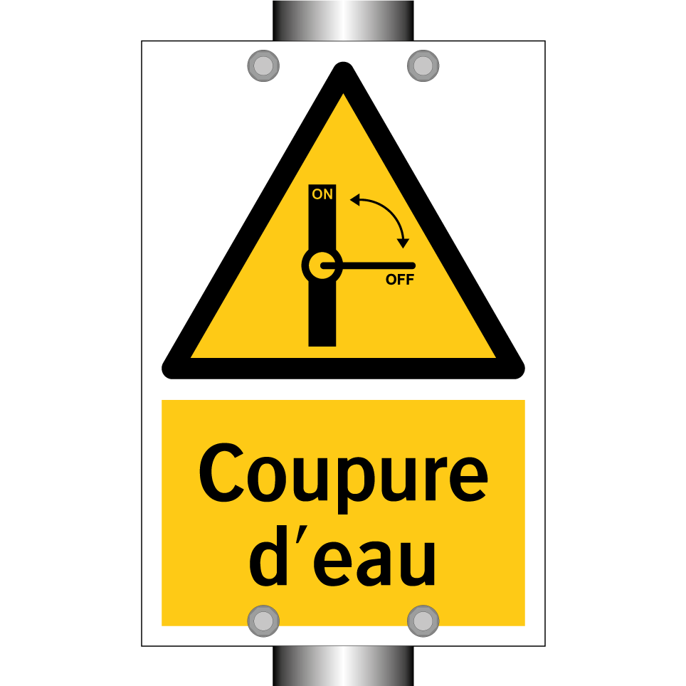 Panneau d'avertissement avec le texte : "Coupure d'eau"
