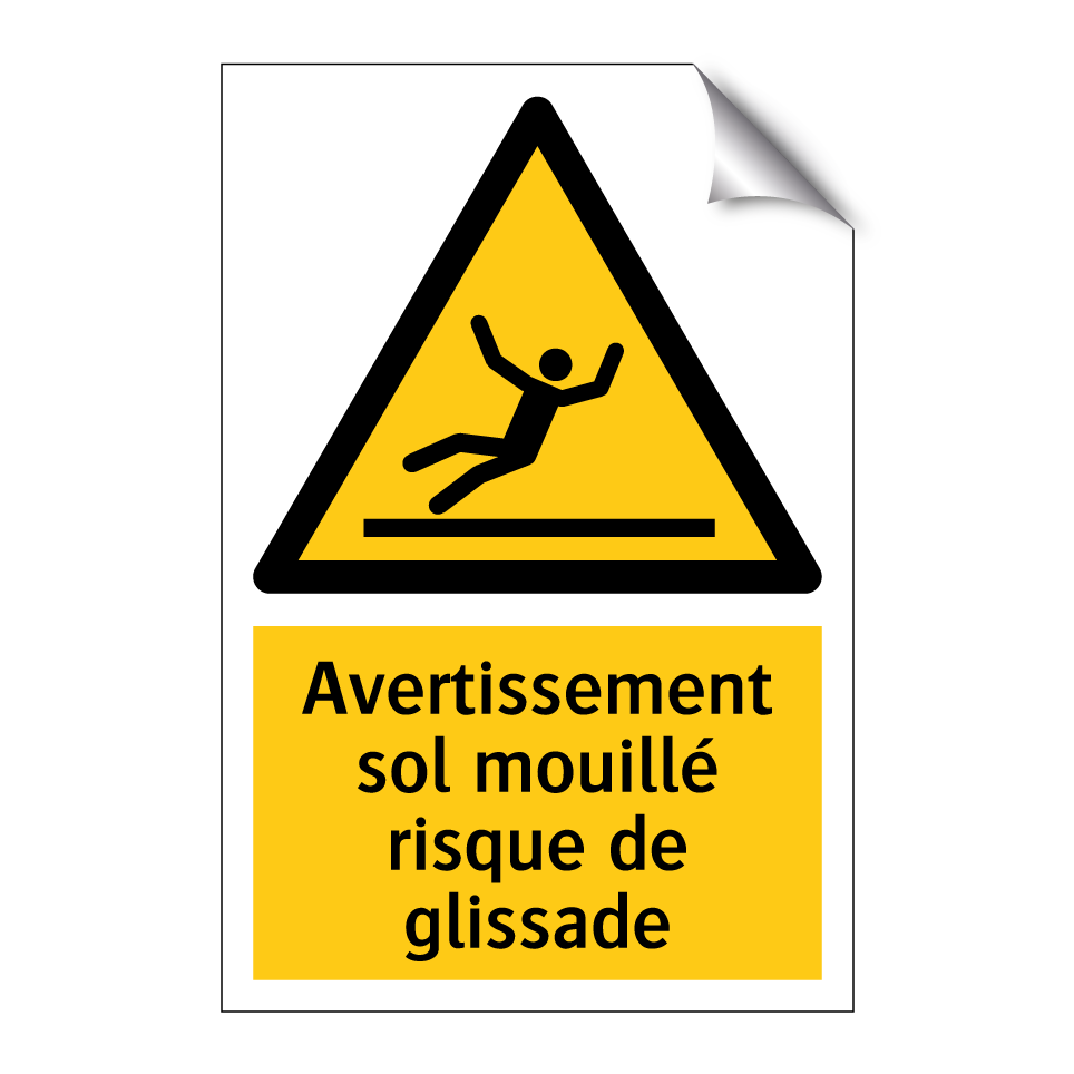 Panneau d'avertissement avec le texte : "Avertissement sol mouillé risque de glissade"