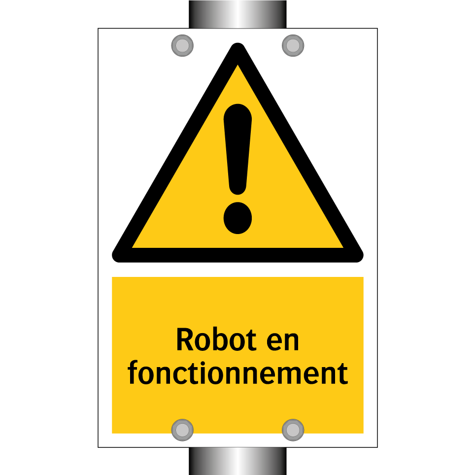 Panneau d'avertissement avec le texte : "Robot en fonctionnement"