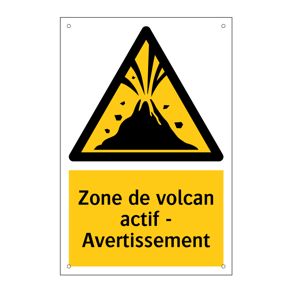 Ce panneau d'avertissement est essentiel pour garantir la sécurité dans les zones à risque. Conçu pour signaler la présence d'une zone volcanique active, il attire immédiatement l'attention grâce à sa couleur jaune vive et son symbole distinctif. Idéal pour être placé à l'entrée de parcs naturels, sentiers de randonnée ou zones touristiques proches de volcans, ce panneau informe et prévient les visiteurs des dangers potentiels. En installant ce panneau, vous contribuez à la sensibilisation et à la protection des personnes contre les risques liés à l'activité volcanique. Sa visibilité et son message clair en font un outil indispensable pour la sécurité publique.
