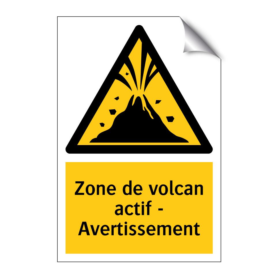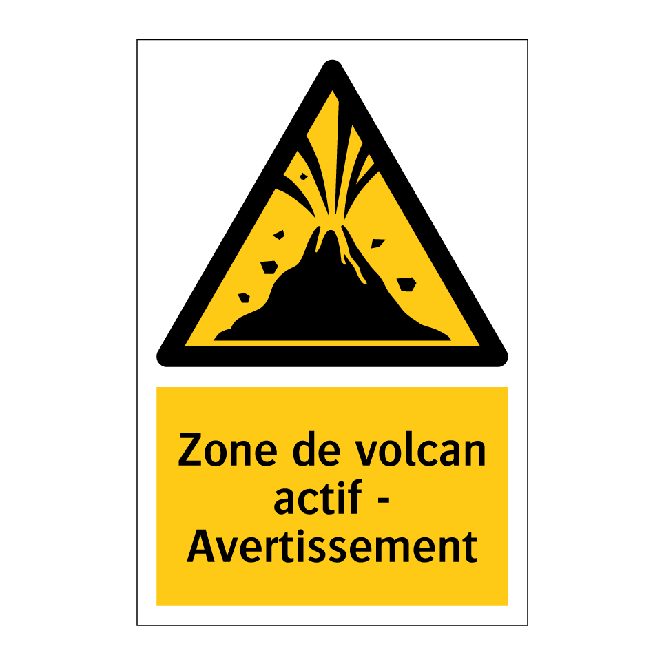 Panneau d'avertissement avec le texte : "Zone de volcan actif - Avertissement"