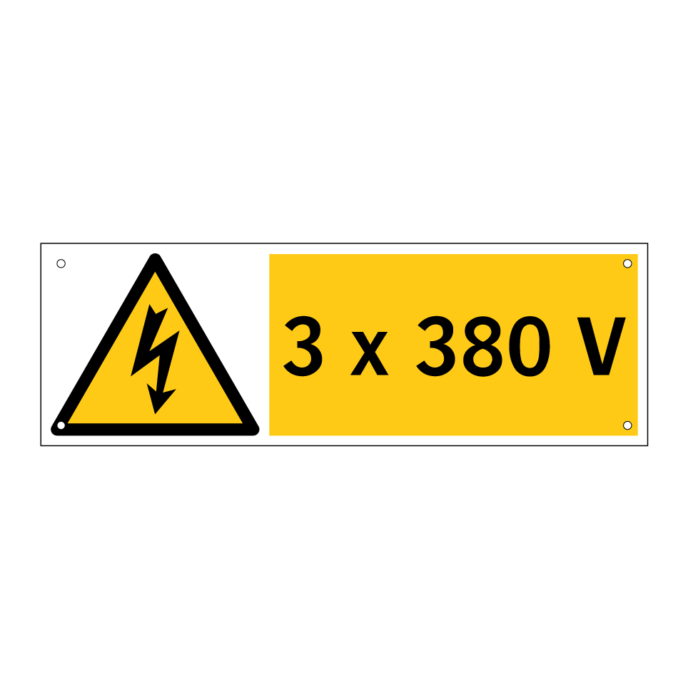 Panneau d'avertissement avec le texte : "3 x 380 V"