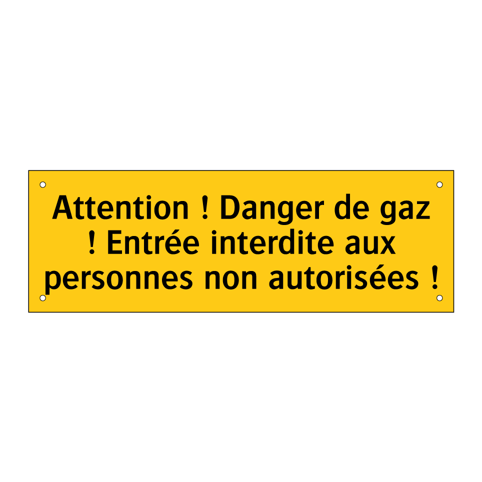 Panneau d'avertissement avec le texte : "Attention ! Danger de gaz ! Entrée interdite aux personnes non autorisées !"