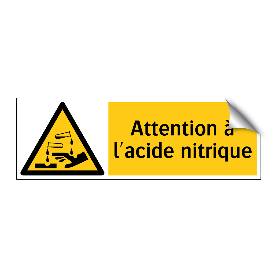 Panneau d'avertissement avec le texte : "Attention à l'acide nitrique"