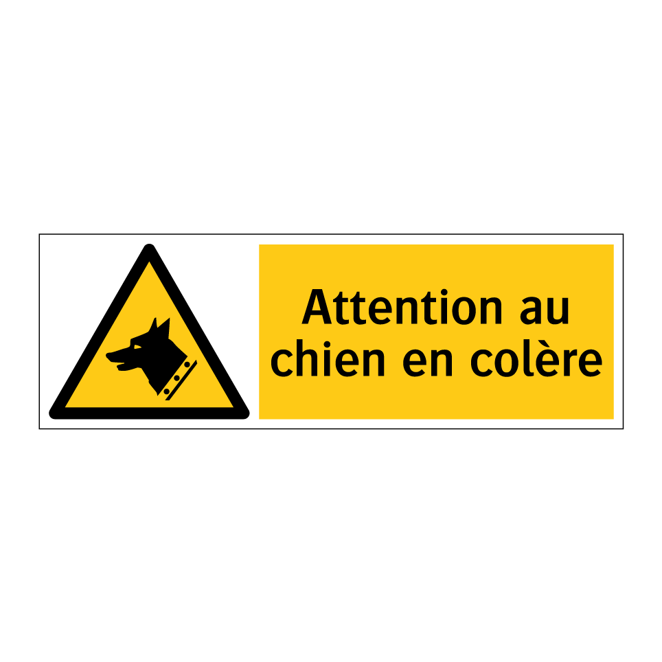 Panneau d'avertissement avec le texte : "Attention au chien en colère"
