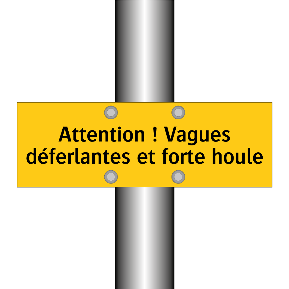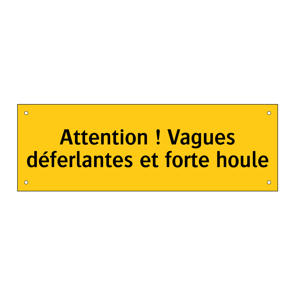 Panneau d'avertissement avec le texte : "Attention ! Vagues déferlantes et forte houle"