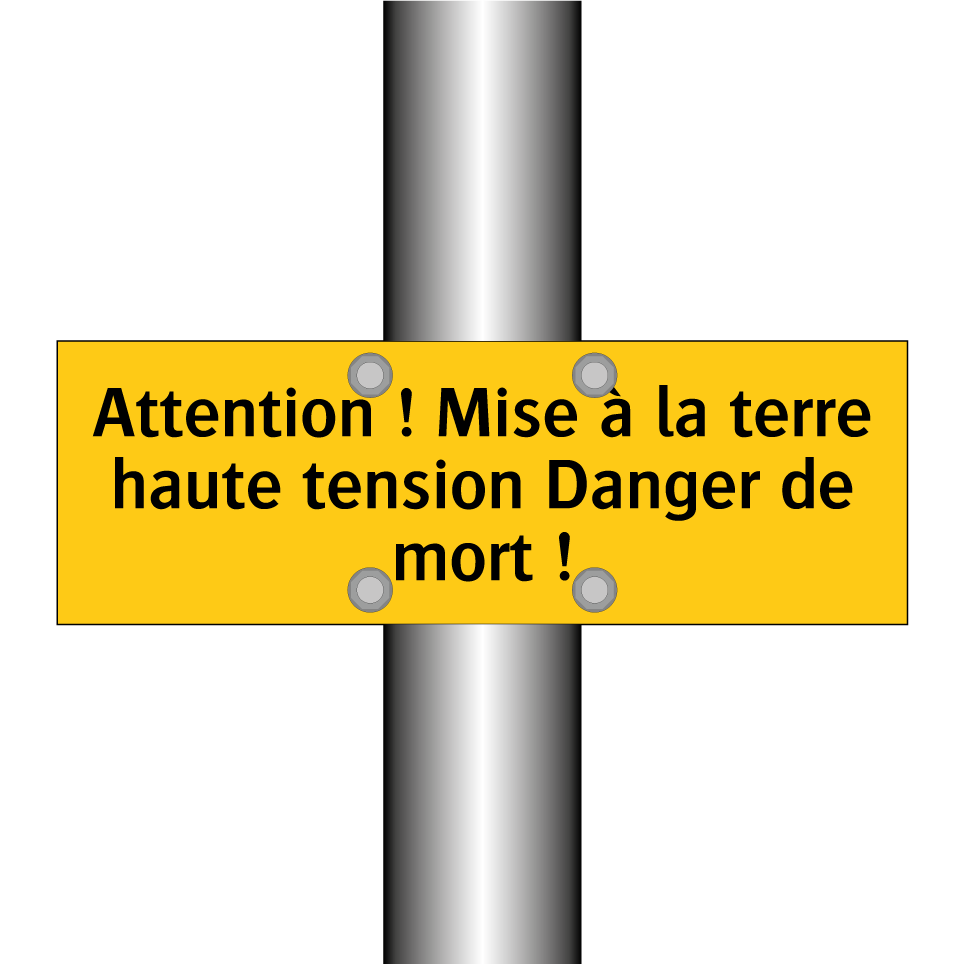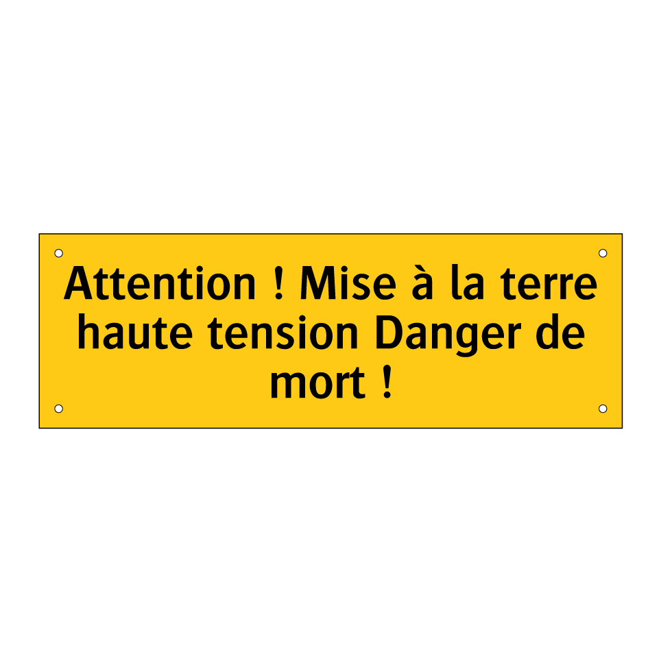 Panneau d'avertissement avec le texte : "Attention ! Mise à la terre haute tension Danger de mort !"