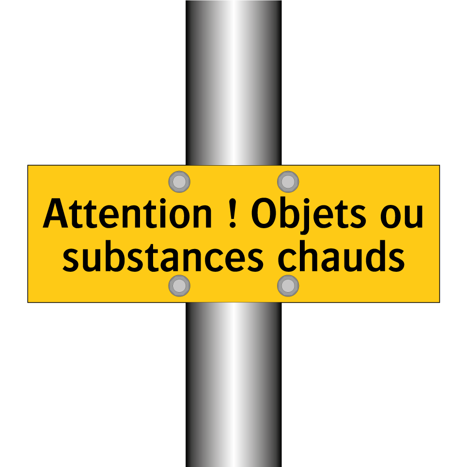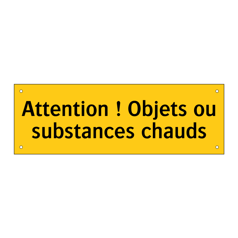 Panneau d'avertissement avec le texte : "Attention ! Objets ou substances chauds"