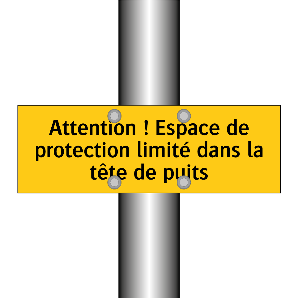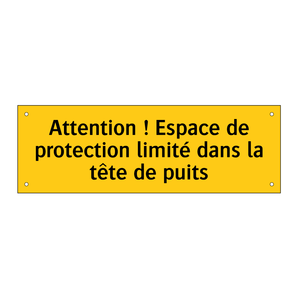 Panneau d'avertissement avec le texte : "Attention ! Espace de protection limité dans la tête de puits"