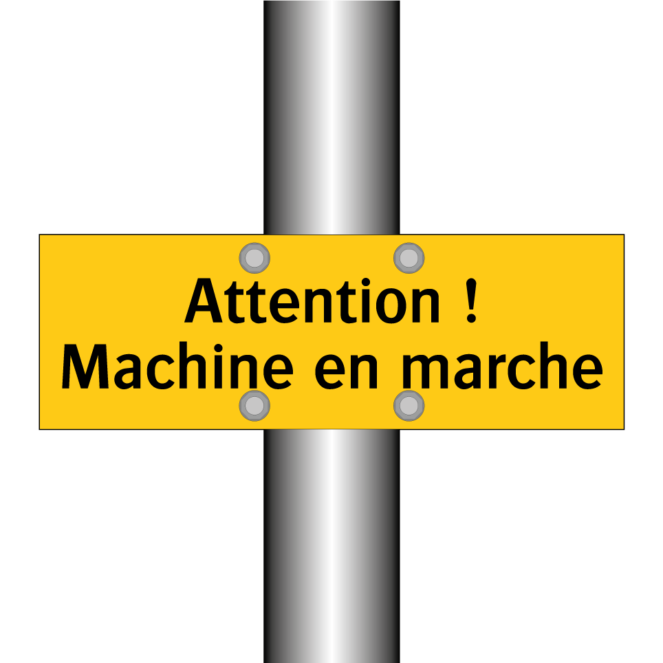 Panneau d'avertissement avec le texte : "Attention ! Machine en marche"