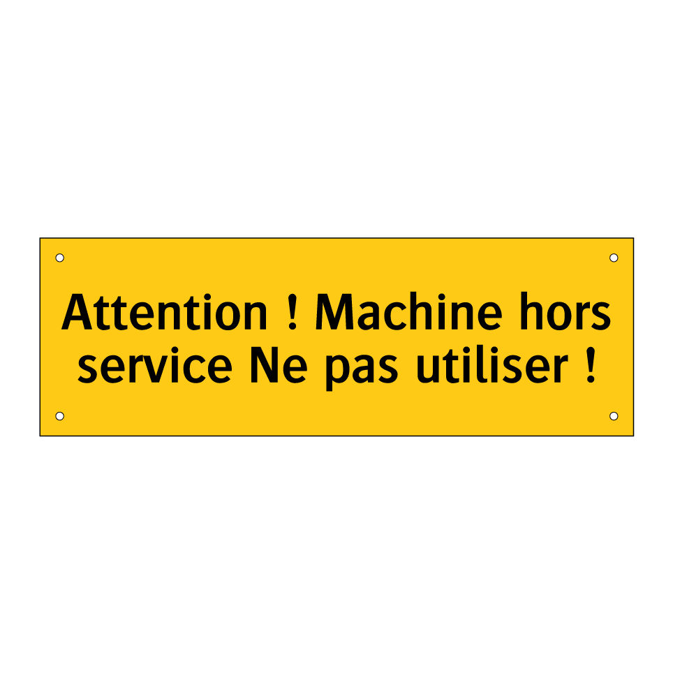 Panneau d'avertissement avec le texte : "Attention ! Machine hors service Ne pas utiliser !"