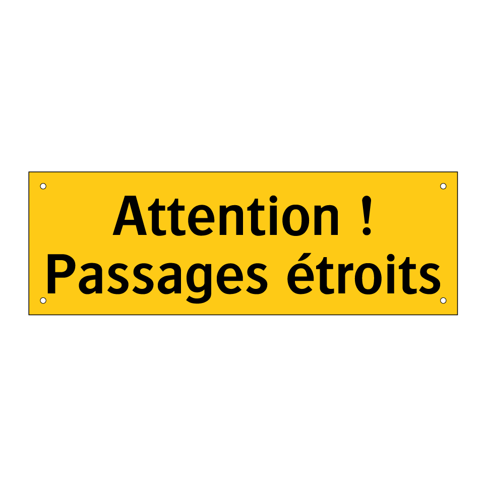 Panneau d'avertissement avec le texte : "Attention ! Passages étroits"