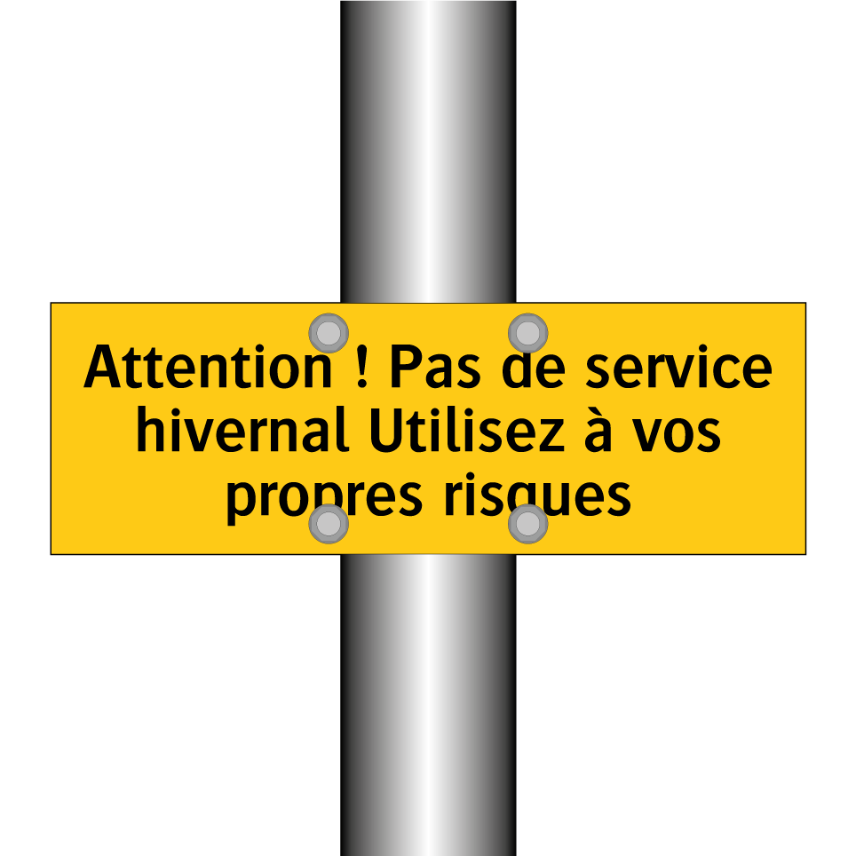 Panneau d'avertissement avec le texte : "Attention ! Pas de service hivernal Utilisez à vos propres risques"