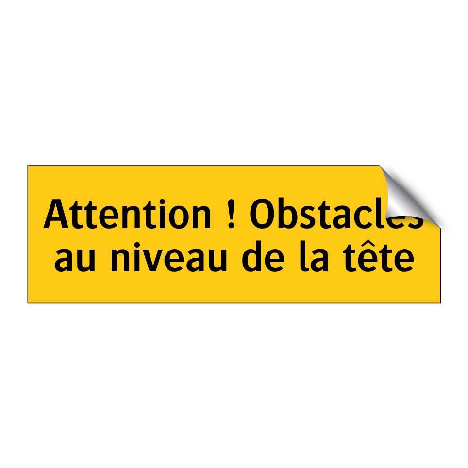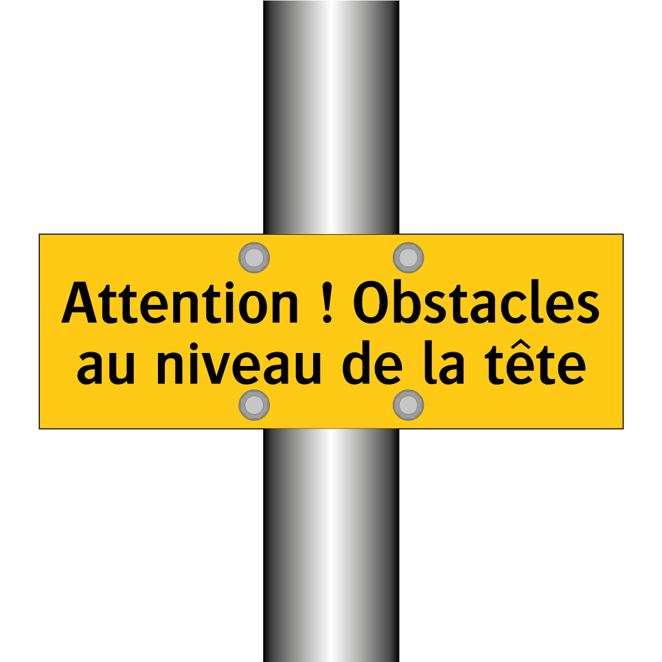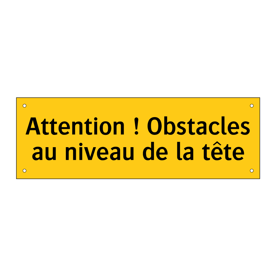 Panneau d'avertissement avec le texte : "Attention ! Obstacles au niveau de la tête"