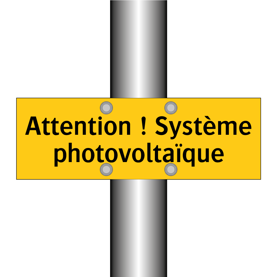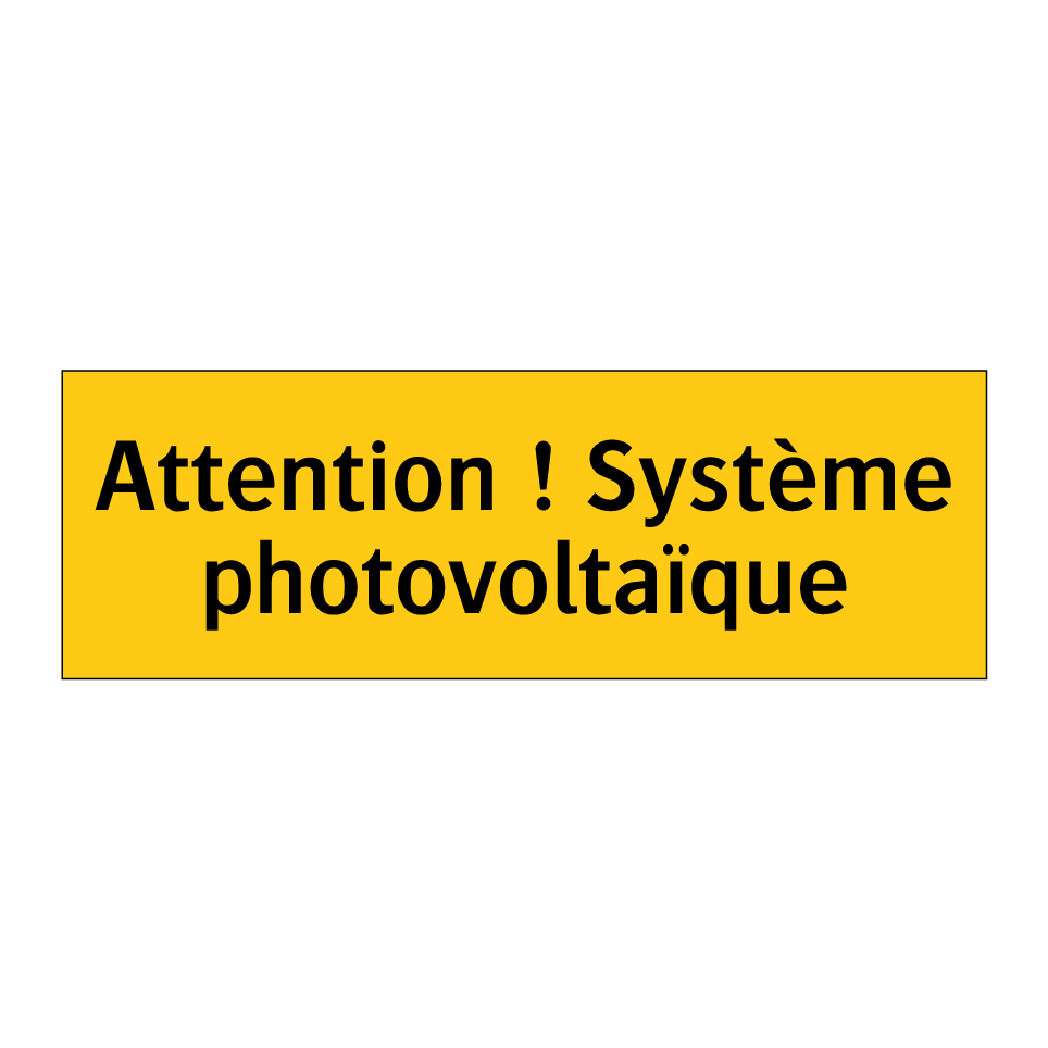 Panneau d'avertissement avec le texte : "Attention ! Système photovoltaïque"