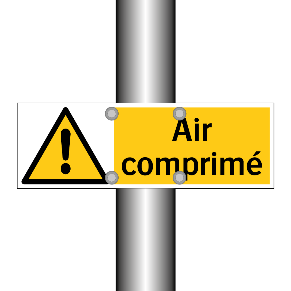 Panneau d'avertissement avec le texte : "Air comprimé"