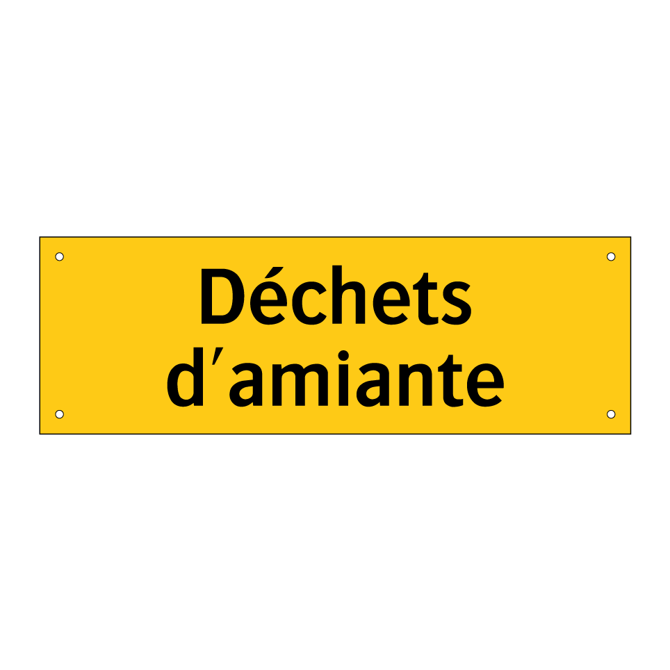 Panneau d'avertissement avec le texte : "Déchets d'amiante"