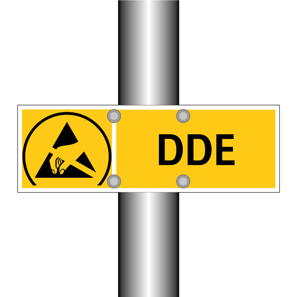 Panneau d'avertissement avec le texte : "DDE"