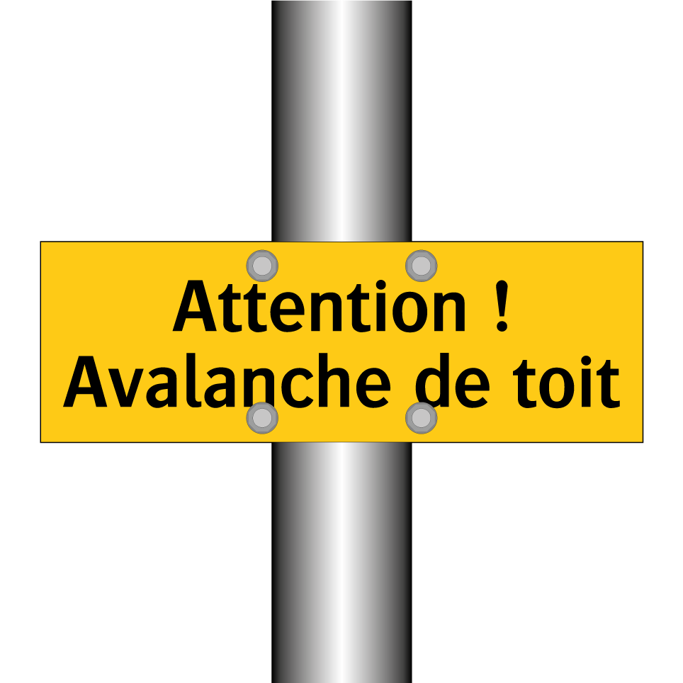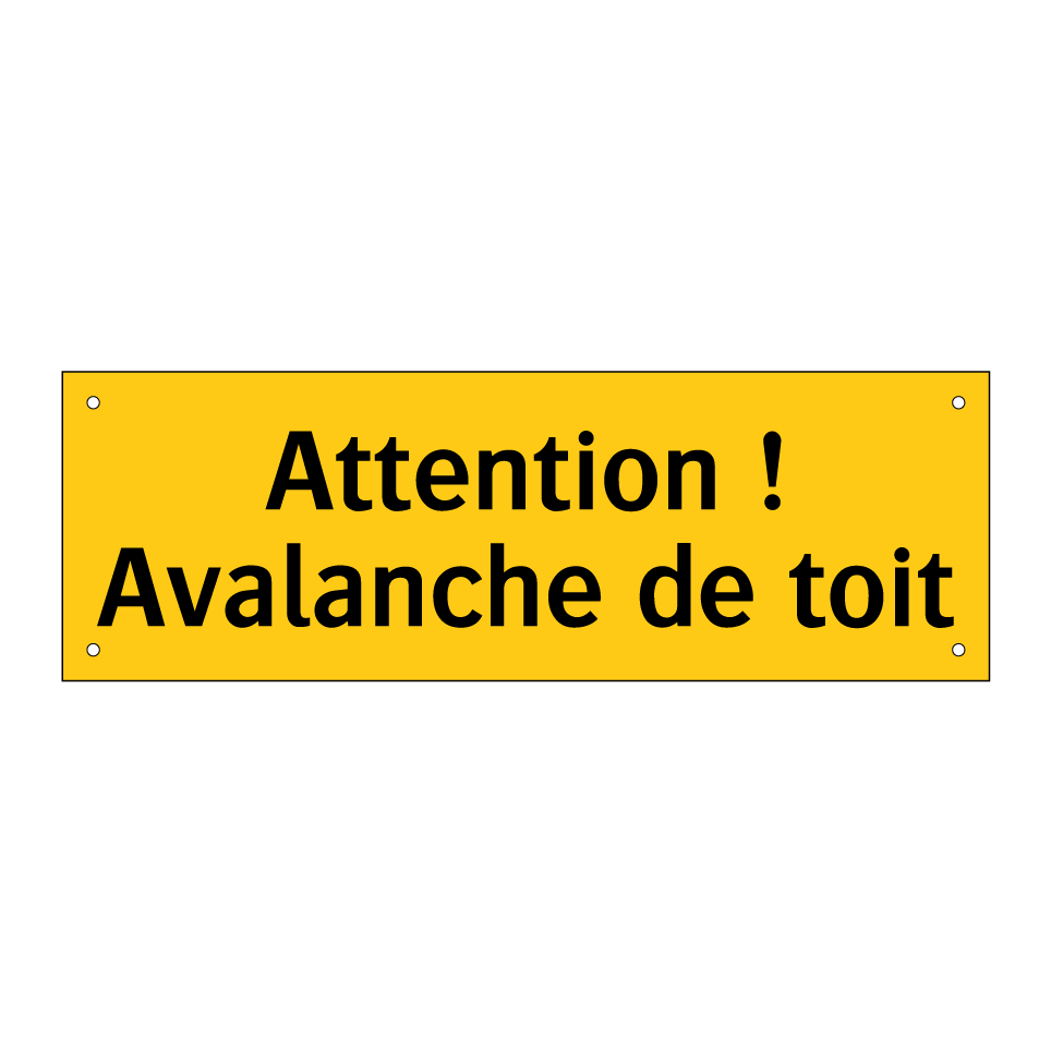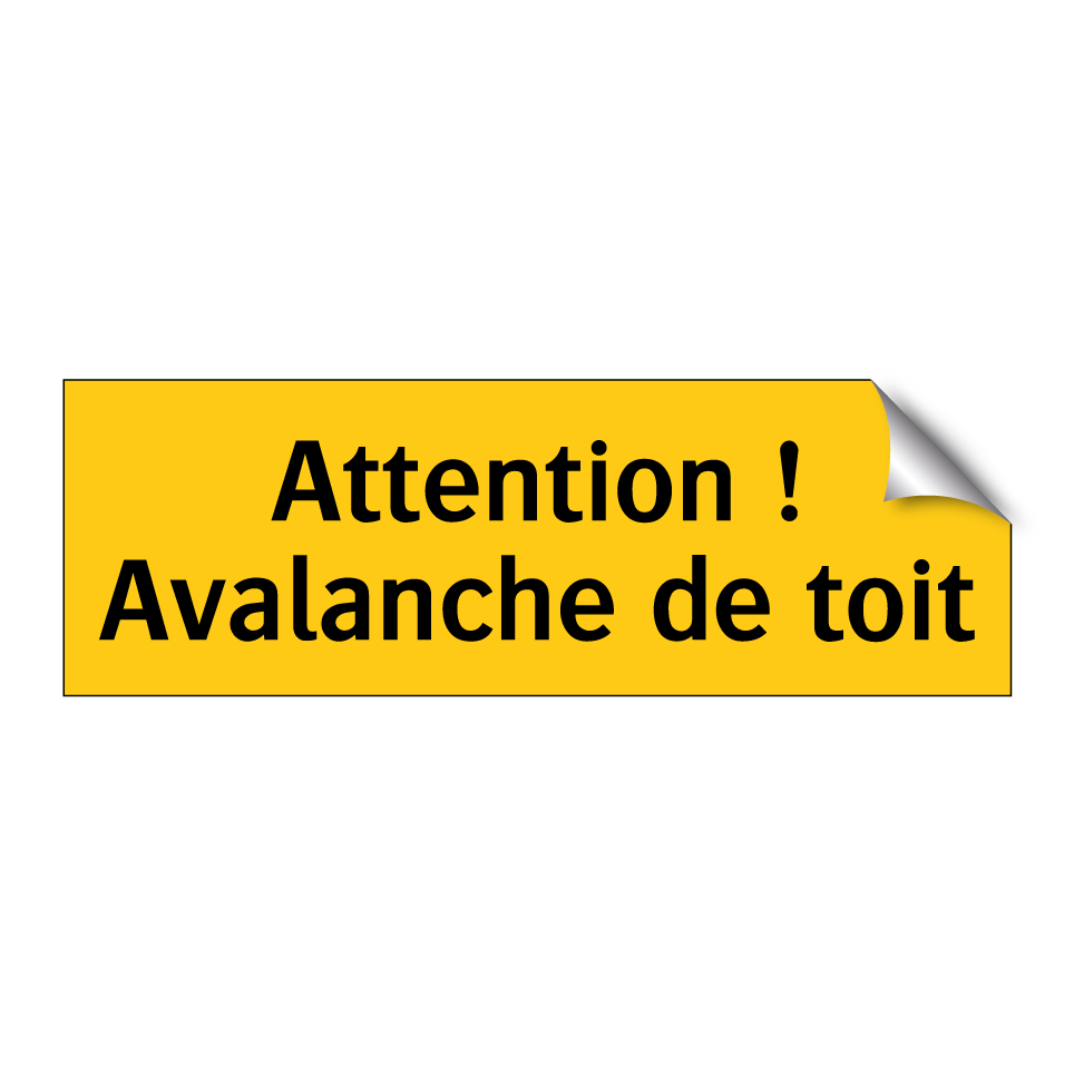 Panneau d'avertissement avec le texte : "Attention ! Avalanche de toit"