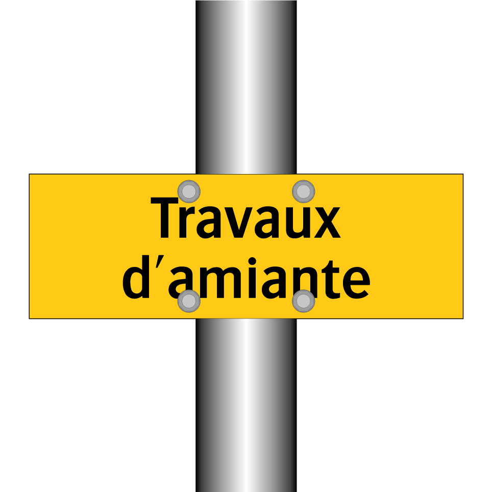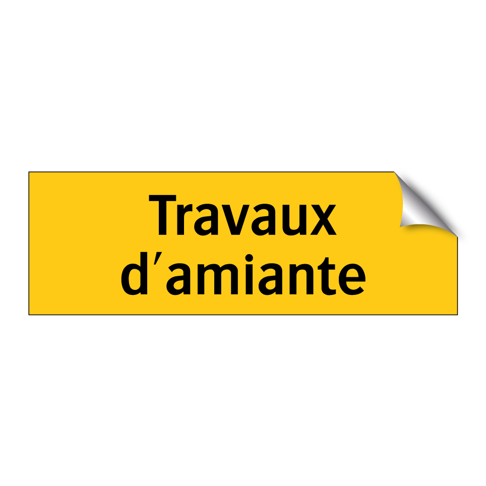 Panneau d'avertissement avec le texte : "Travaux d'amiante"