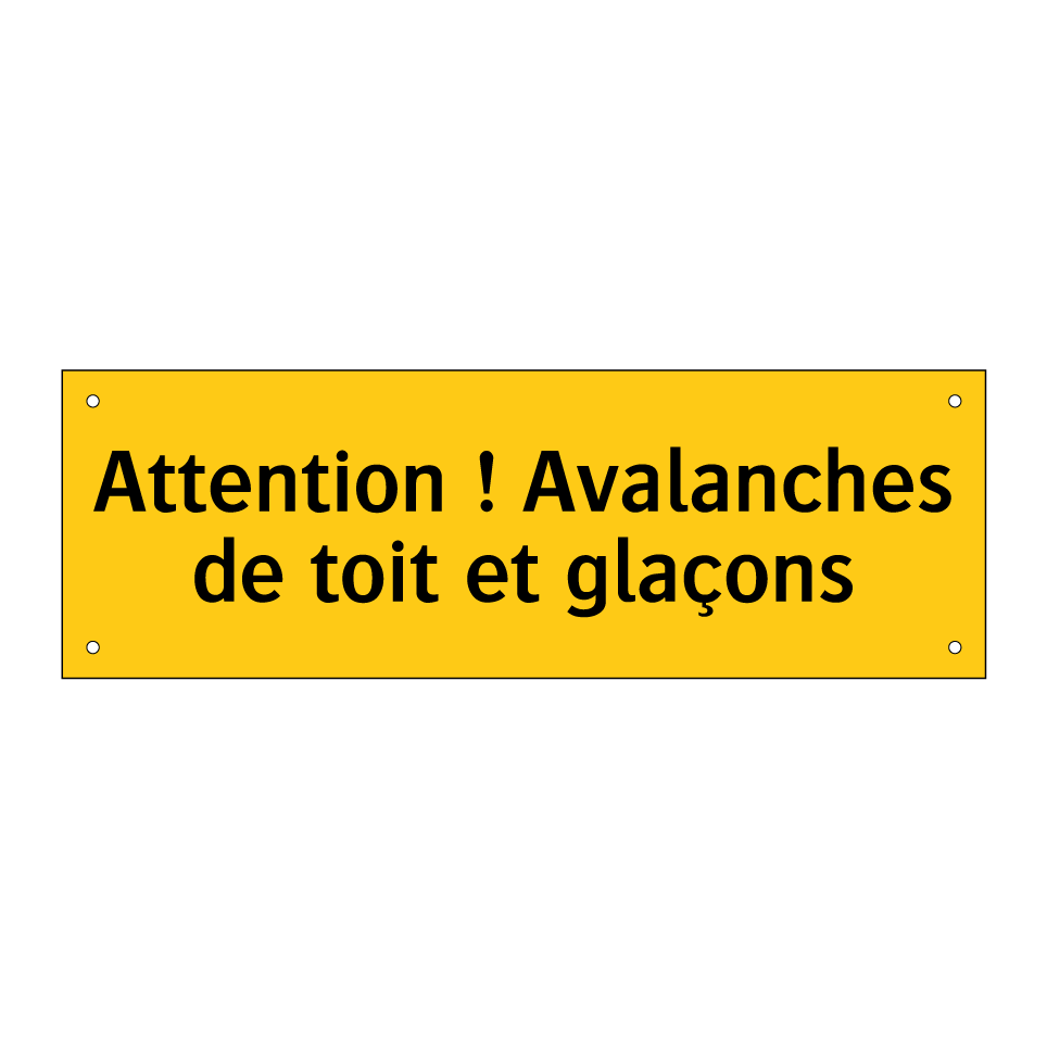 Ce panneau d'avertissement est essentiel pour assurer la sécurité dans les zones sujettes aux chutes de neige et de glace. Idéal pour être placé à proximité des bâtiments, il informe les passants des dangers potentiels liés aux avalanches de toit et aux glaçons. Ce panneau est particulièrement utile dans les régions montagneuses ou les zones urbaines où les toits accumulent facilement la neige. En installant ce panneau, vous contribuez à prévenir les accidents en alertant les piétons et les travailleurs des risques imminents. Sa couleur jaune vive et son texte noir garantissent une visibilité optimale, attirant immédiatement l'attention de tous.
