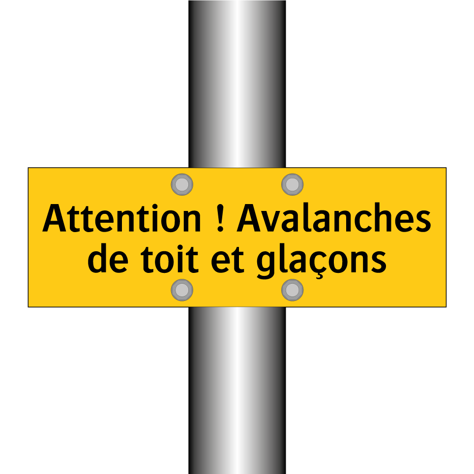 Panneau d'avertissement avec le texte : "Attention ! Avalanches de toit et glaçons"