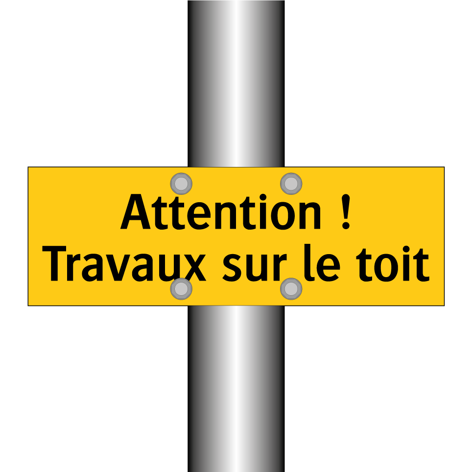 Panneau d'avertissement avec le texte : "Attention ! Travaux sur le toit"
