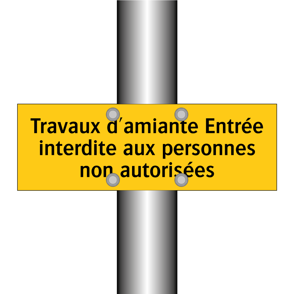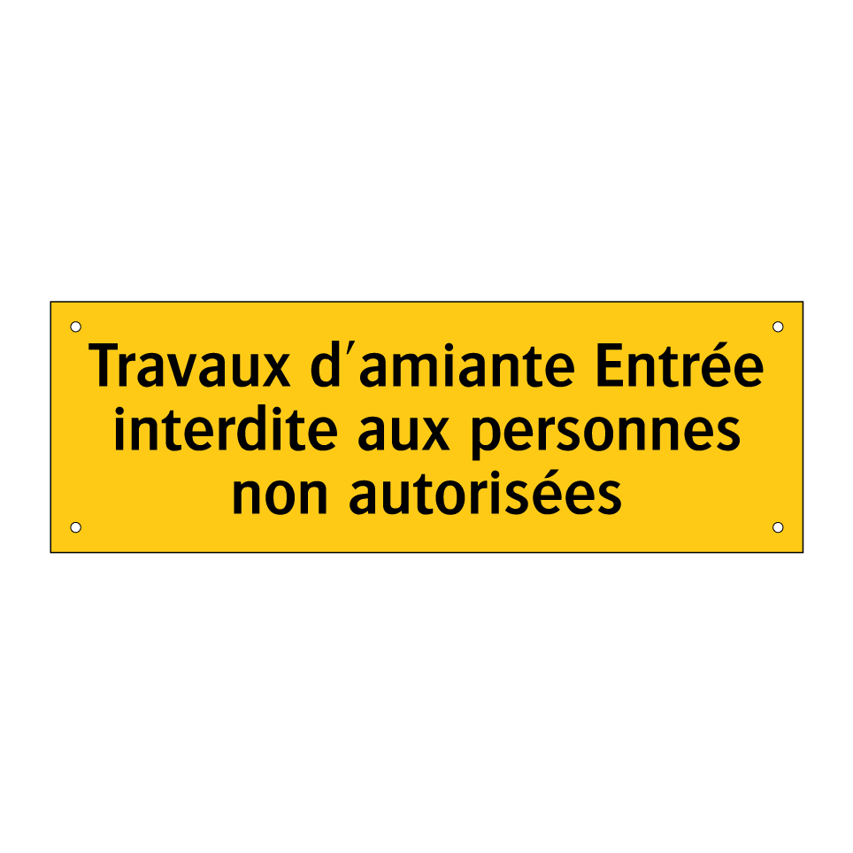 Panneau d'avertissement avec le texte : "Travaux d'amiante Entrée interdite aux personnes non autorisées"