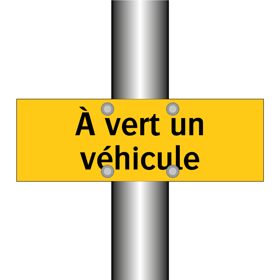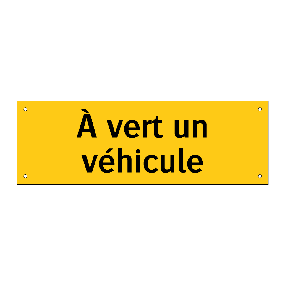 Panneau d'avertissement avec le texte : "À vert un véhicule"