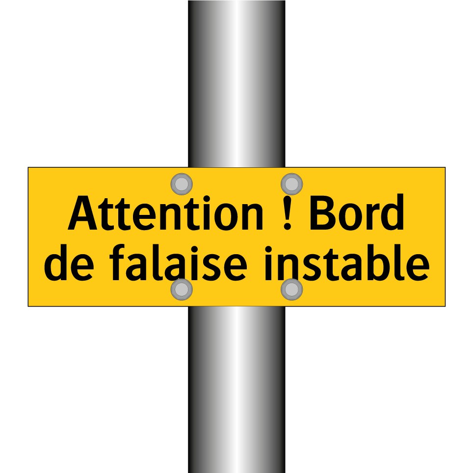 Ce panneau d'avertissement est essentiel pour garantir la sécurité des visiteurs dans les zones à risque. Conçu pour signaler les dangers potentiels, il est idéal pour être placé à proximité des falaises ou des terrains instables. Sa couleur jaune vive et son texte noir attirent immédiatement l'attention, assurant que le message de prudence est bien reçu. Ce type de signalisation est crucial dans les parcs naturels, les sentiers côtiers ou toute autre zone où le sol peut être imprévisible. En installant ce panneau, vous contribuez à prévenir les accidents et à protéger les promeneurs des dangers cachés.