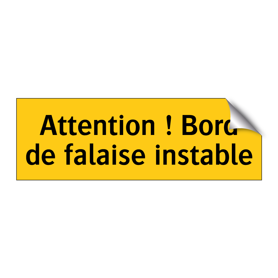 Panneau d'avertissement avec le texte : "Attention ! Bord de falaise instable"