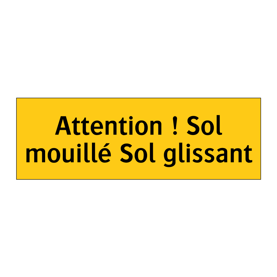 Panneau d'avertissement avec le texte : "Attention ! Sol mouillé Sol glissant"