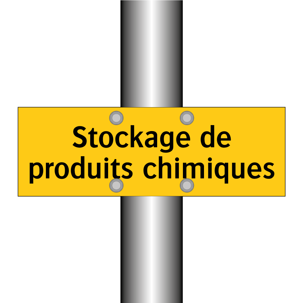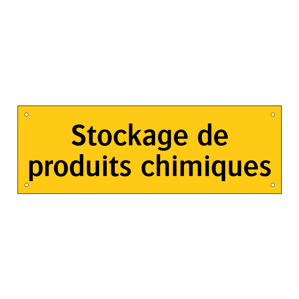 Panneau d'avertissement avec le texte : "Stockage de produits chimiques"