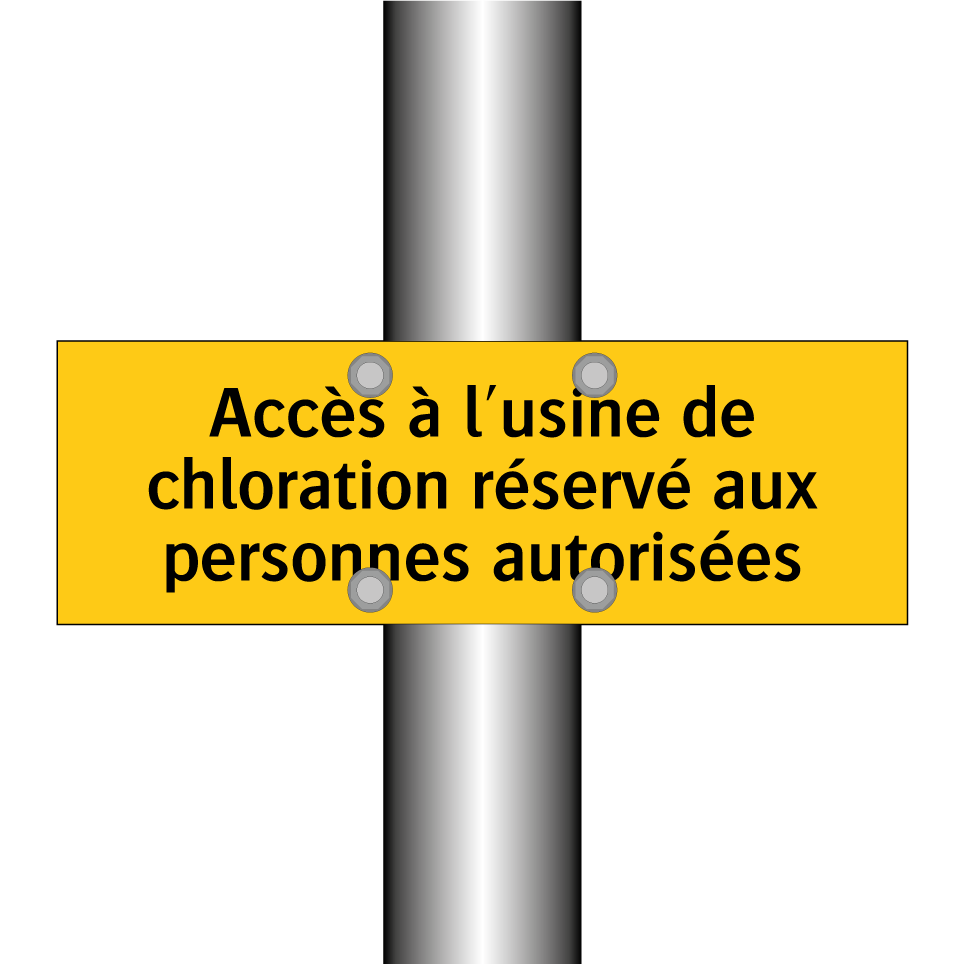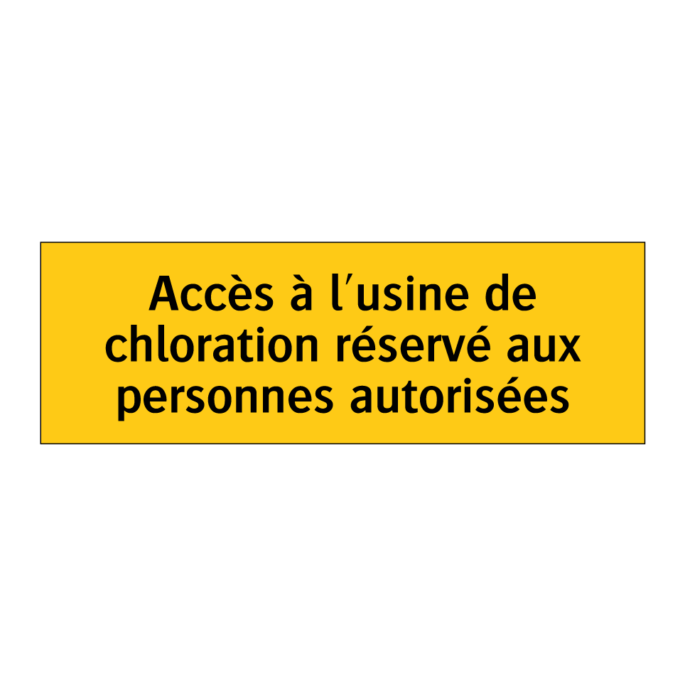 Panneau d'avertissement avec le texte : "Accès à l'usine de chloration réservé aux personnes autorisées"
